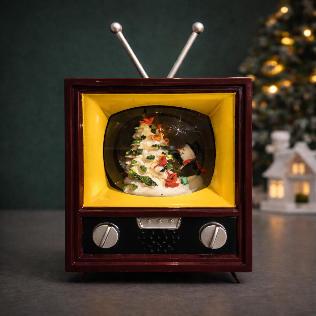 A Christmas décor piece inspired by a classic TV design, featuring built-in music and warm lighting. Adds a festive atmosphere and a nostalgic charm to any space. Perfect for seasonal décor or as a unique gift.
