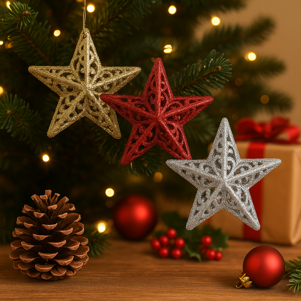 Christmas Star Tree Ornaments β 2 Packs (Each Pack Includes 3 Stars in 3 Colors)