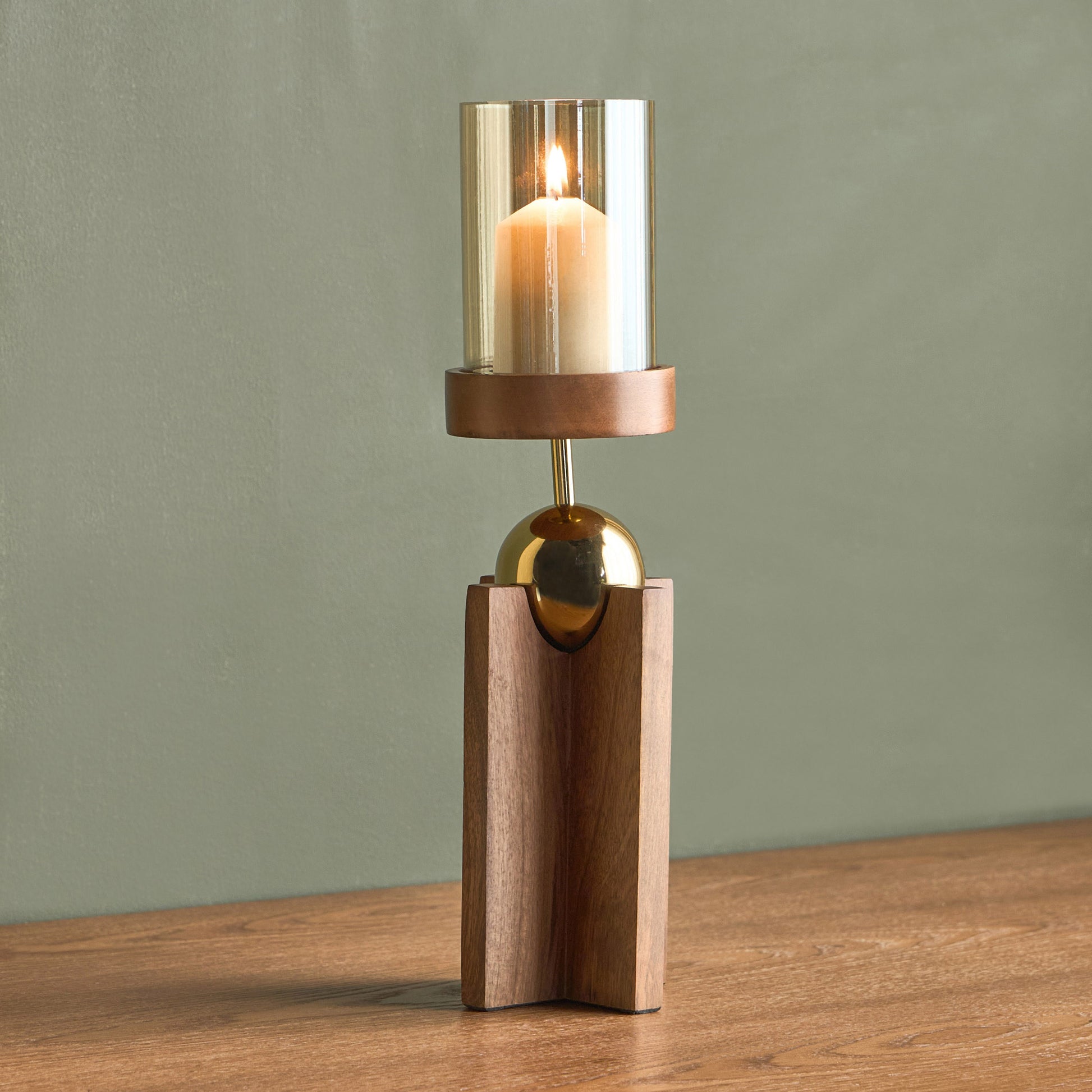 Elegant Decorative Candle Holder | Wood & Glass Design