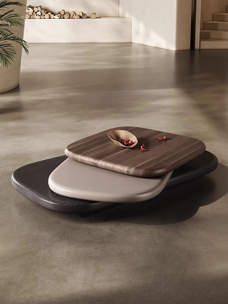 Its organic, rounded edges and low-profile silhouette create a serene focal point, while the multi-layered design adds depth and dimension to any modern interior. Perfect for styling with trays, books, or décor accents, it combines functionality with artistic expression.