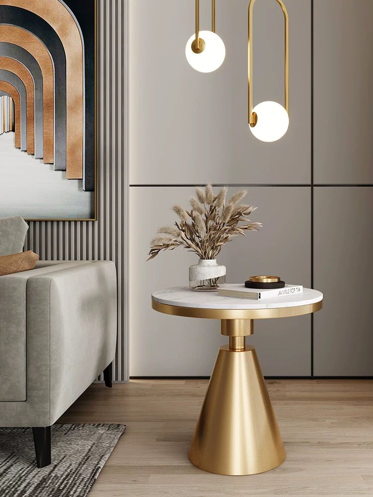 A luxury side table featuring a natural marble top, elegant metallic frame, and modern conical base. Available in two colors to suit any décor: White Marble / Black Marble