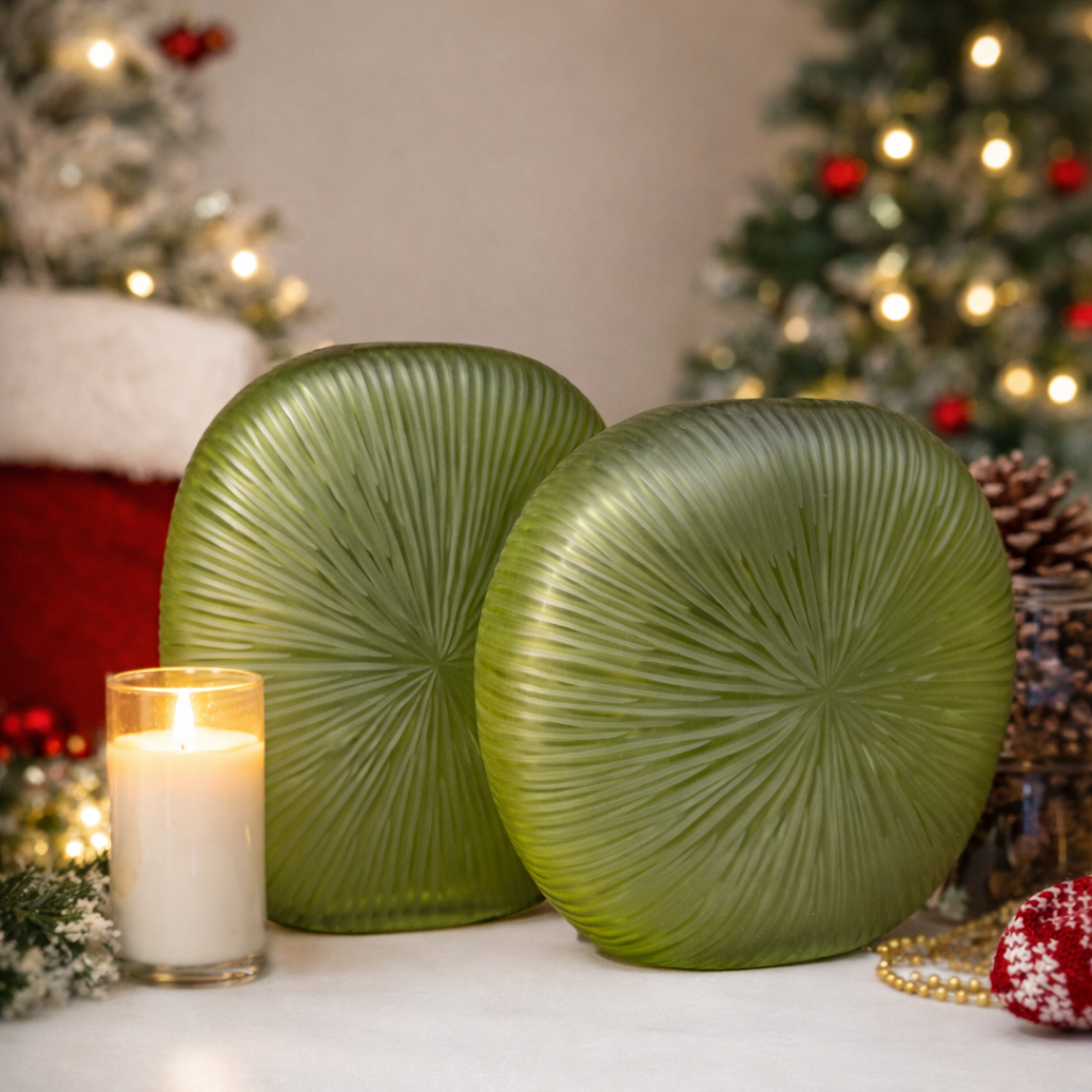 A glass vase set with sculpted design and refined details that adds an elegant artistic touch to any space.